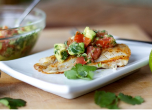 Pan fried fish with a homemade salsa. Everything is ready in 20 minutes. Serve with steamed vegetables that are in season. Skillet Fish with Av